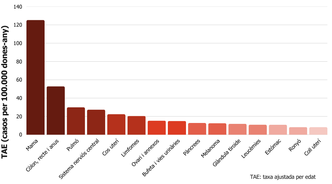 1. Mama 2. Colorectal 3. Pulmó 4. Cos uterí 5. Pàncrees |