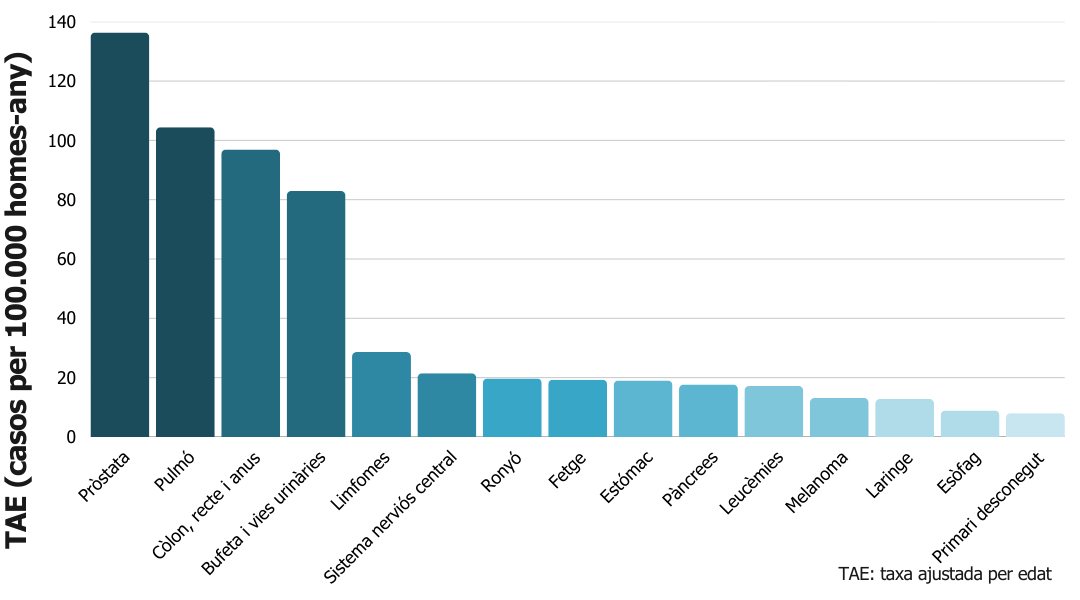 1. Pròstata 2. Pulmó 3. Colorectal 4. Bufeta urinària 5. Ronyó |